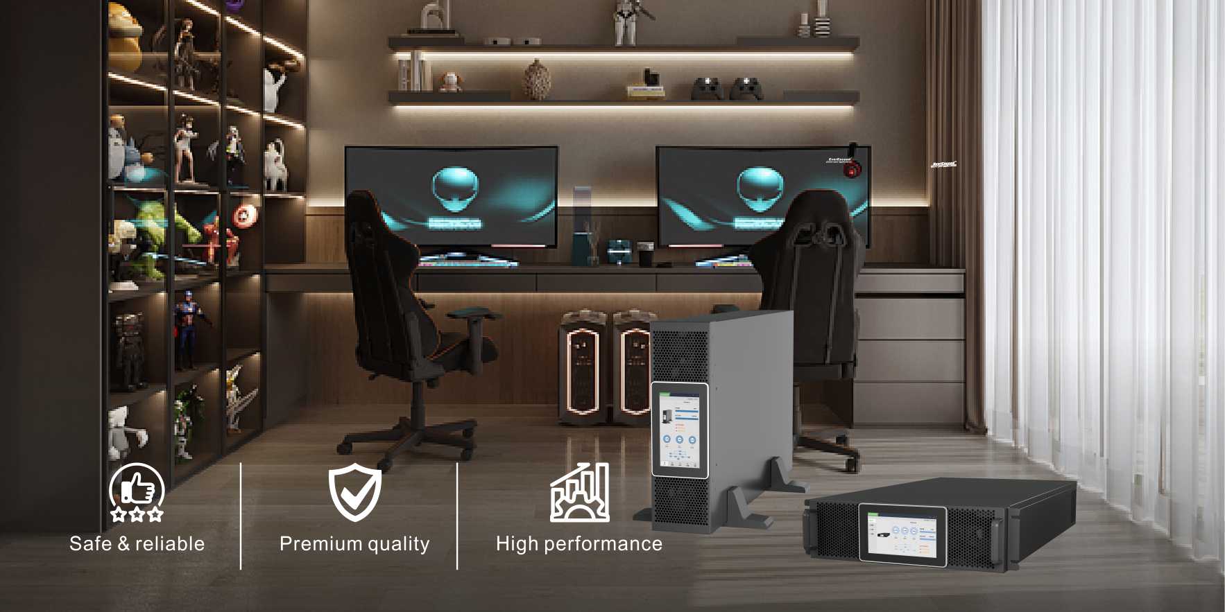 5.5" touch color LCD with graphic display, more information displayed and easier for customer to operate | High efficiency operation in double conversion mode up to 98%. |