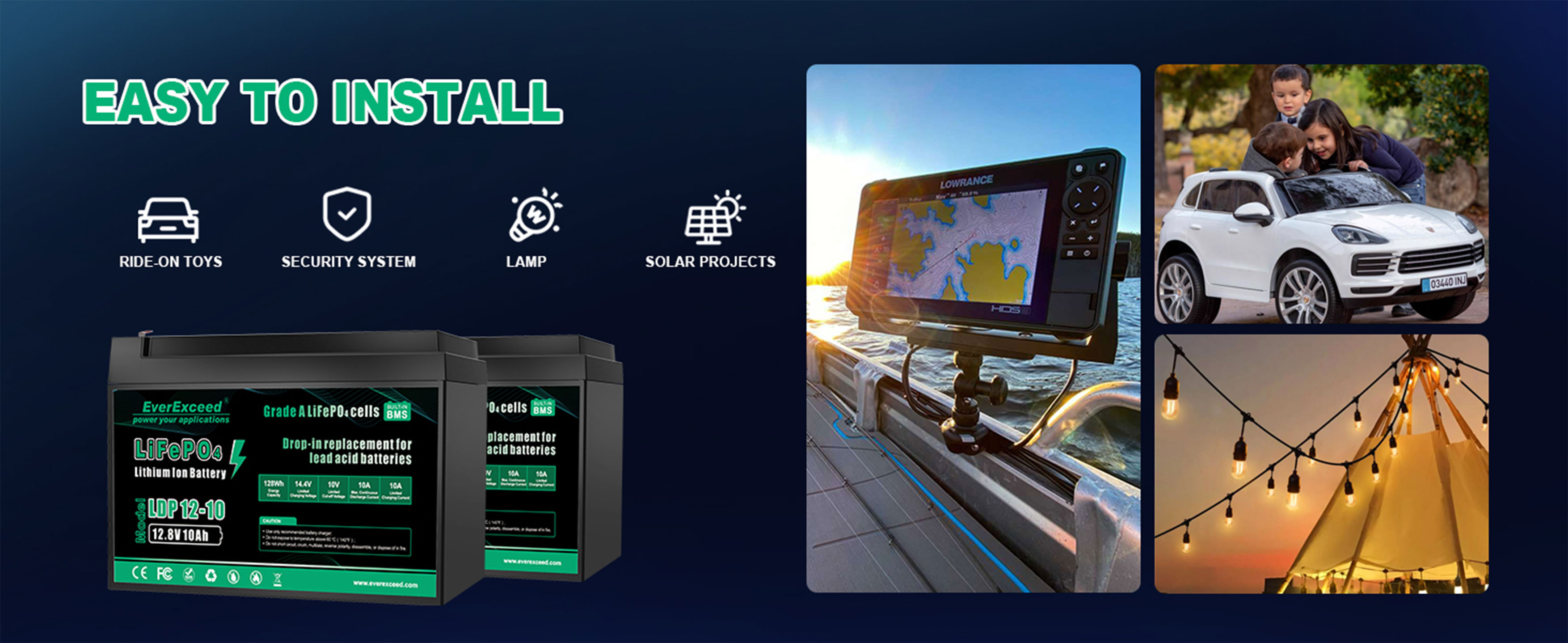 Large capacity battery, suitable for use in RV, camping, yachts, fishing boats, golf carts, solar energy systems, etc