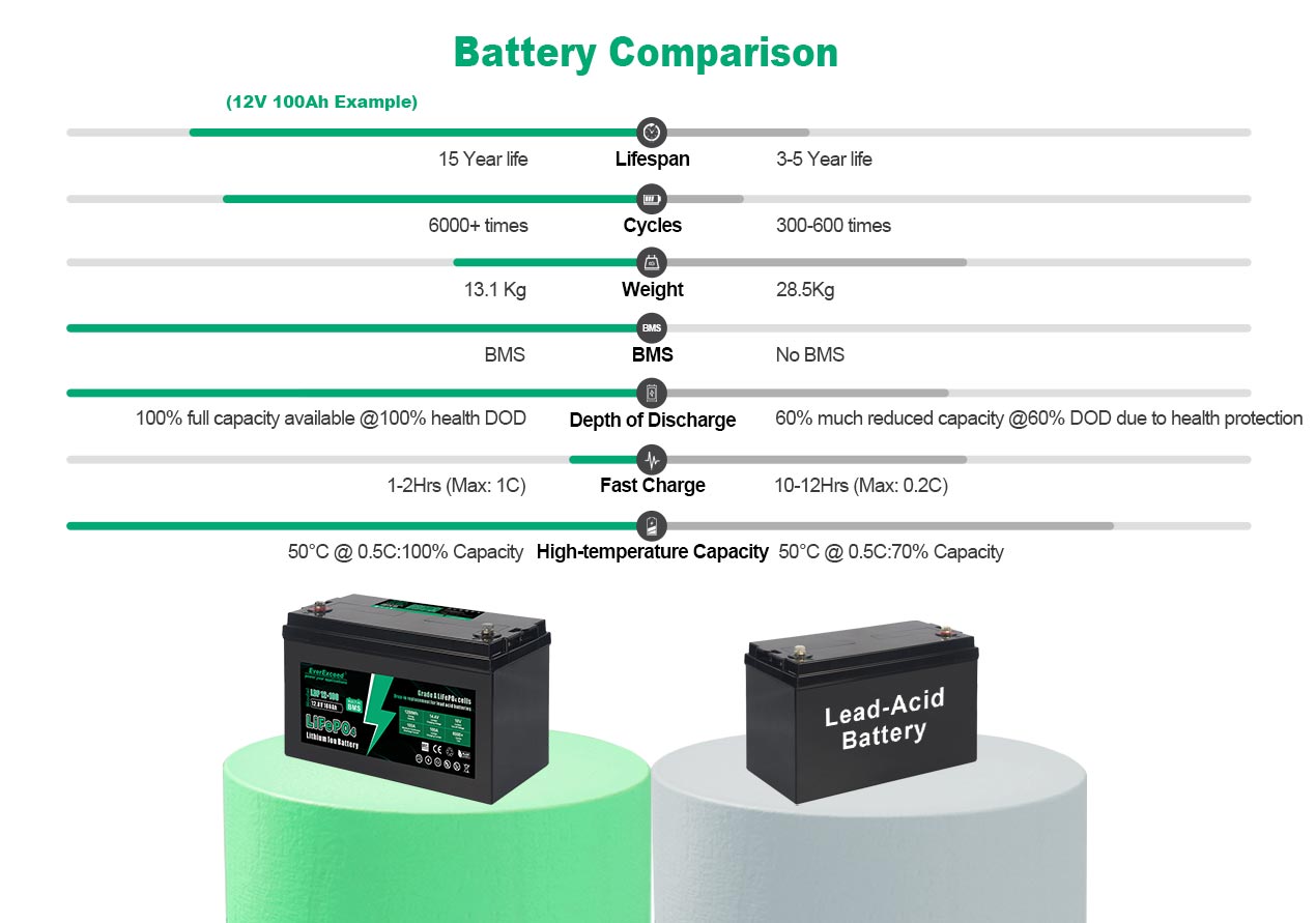 --We use lithium iron phosphate batteries,with no fire, no explosion, wide operating temperature range,which can ensure the safety of use.