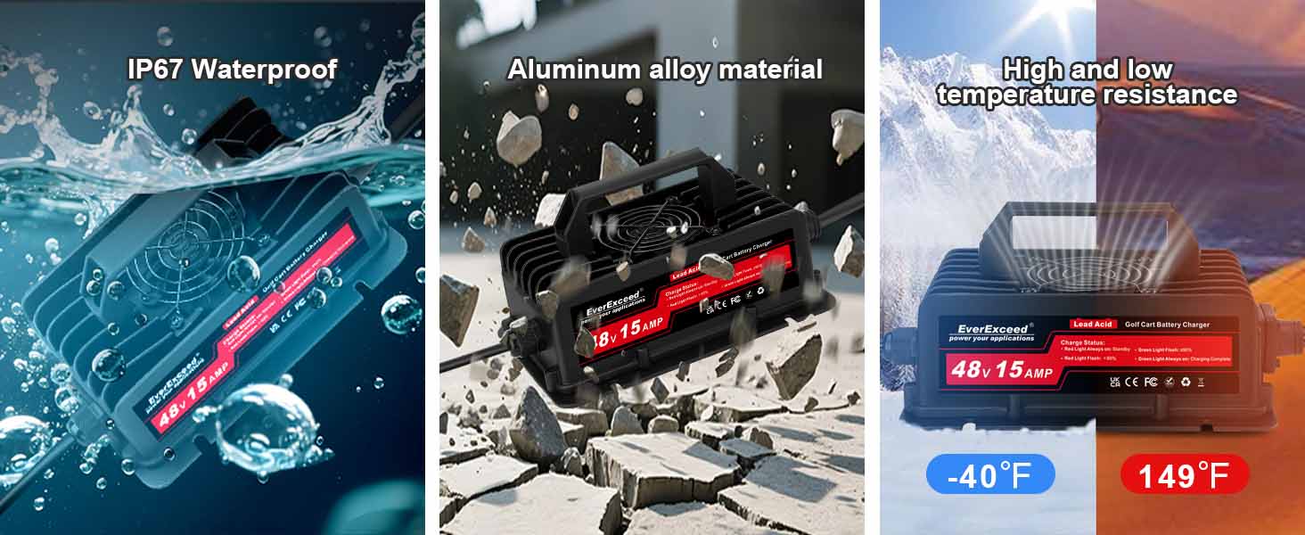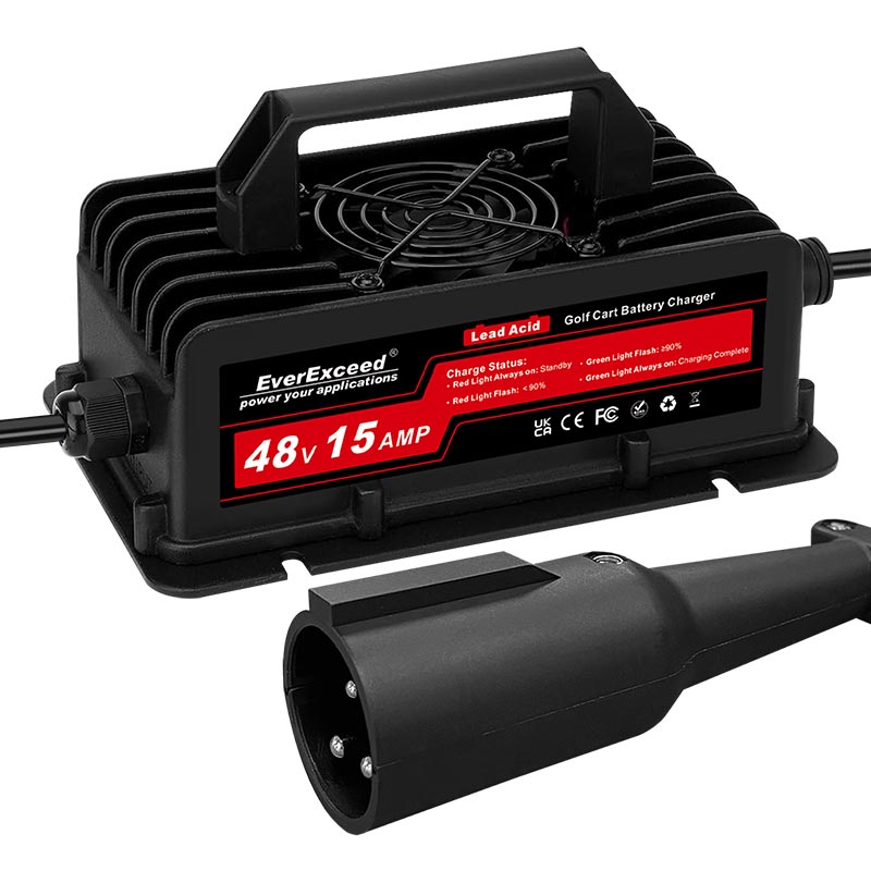 This charger is designed for 48V lead-acid batteries and is highly suitable for golf carts.