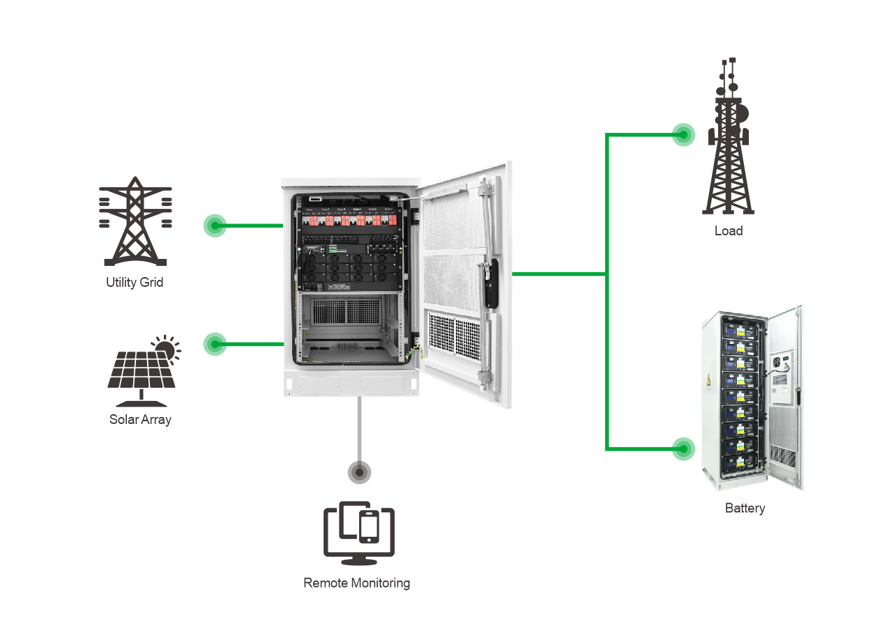 All in one Design: The cabinet is highly integrated, supporting photovoltaic, AC, and diesel inputs. Users can flexibly choose the input source based on actual needs to optimize energy efficiency.
