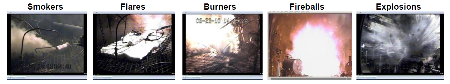 The resulting reaction can look anywhere from a rapid venting of thick smoke (i.e., smoke bomb/smoker), to a road flare, to a steady burn, to a fireball to an explosion. See below figure.