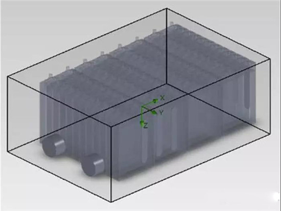 On the basis of the above-mentioned single cell heat generation model, the battery pack model was established by using SOLIDWORKS software to simulate the heat production and the battery pack under different usage conditions.
