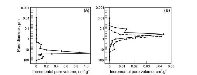The figure shows the pore size distribution in radius for an AGM separator sample produced using a low pressure extrusion process.