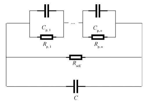 Reduce the battery to an equivalent circuit as shown in Figure 4. Where: Rp, i is the electrochemical reaction resistance, Cp, i is the double electric layer capacitor, Rself is the self-discharge resistance, and C is the battery equivalent capacitance. Applying a short-time current pulse to the lithium-ion battery measures the voltage change during the subsequent resting process, and the self-discharge resistance value is further analyzed. This method only considers the reaction that plays a leading role in each stage of the static process and decouples the complex reactants, reducing the calculation and shortening the measurement time.