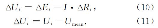 In the battery difference model shown in formulas (10) and (11), Ei is the battery's open circuit voltage, Ri is the internal resistance of the battery, and Ui and I are the measured battery voltage and current respectively. The values of ΔEi and ΔRi are obtained by the recursive least squares method, and the abnormal parameters exceeding the threshold are identified by statistical method to determine whether the battery has an internal short circuit. When the short circuit resistance is 100Ω, the method can realize the identification of the internal short circuit in 4h43min at the earliest.