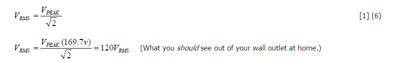 Because the waveform is pure containing no harmonics, one may use the following easy formula to calculatethe RMS or effective value from the waveform: