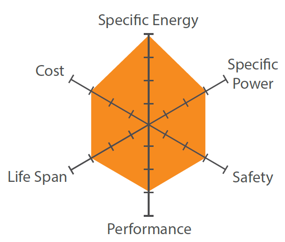 Long life, fast charge, wide temperature range and safe. Low capacity, Expensive. |