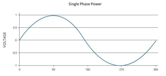 Single-phase power is through common household outlets to power everyday equipment such as laptops, lighting and televisions. When looking at an oscilloscope image of the voltage coming out of a single-phase outlet.