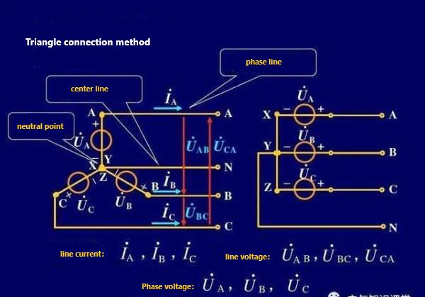 When supplying power, four wires are led out: the wire leading out from the midpoint O is called the neutral or neutral wire; The three wires leading out from the first end of the three coils are collectively referred to as phase wires or