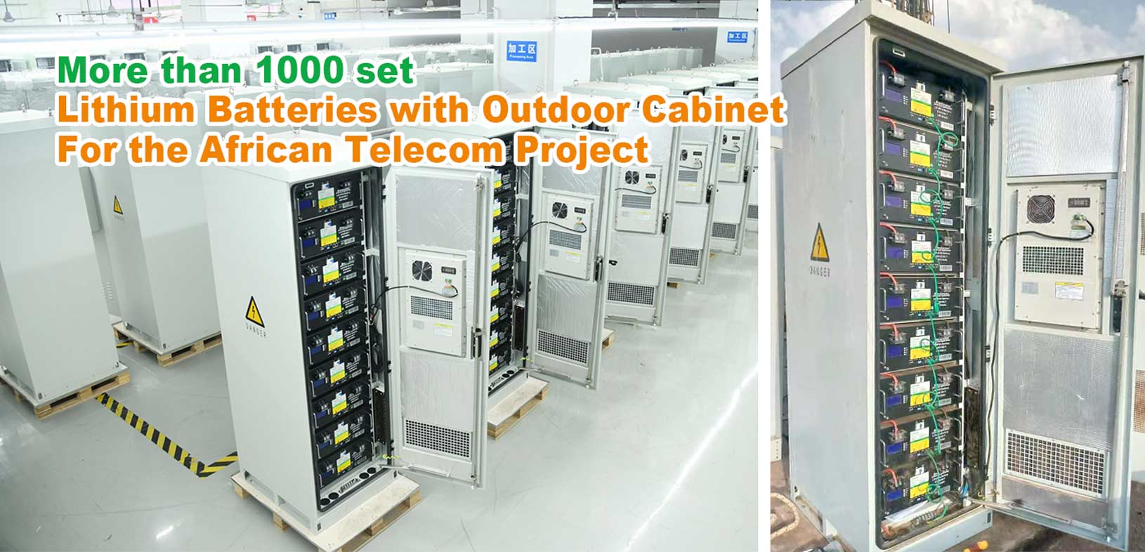 Here we are going to introduce our 48V 900Ah LiFePO4 batteries with customized outdoor cabinet for the African Telecom Project. These telecom solar systems were integrated with 600W DC Air-Conditioner 48V100AH Lithium batteries, which were much "Safer, Smarter, Simpler" and can help you to solve the power problems in your base transceiver station (BTS), internet data center, outdoor integrated power cabinet, network telecommunications facilities etc.