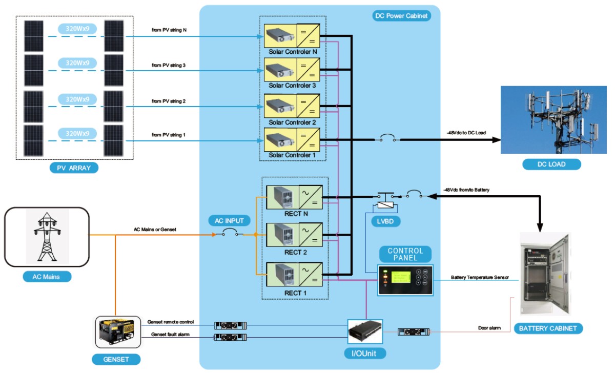 Working diagram of our All in one solar power solution for telecom BTS (ESB):