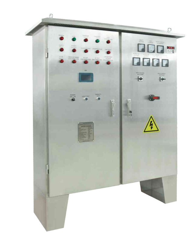 2.Safe and reliable: There are 2 high-power cooling fans added on the top of the cabinet, which can effectively solve the cooling problem of large loads so that the battery charger can operate normally under high loads for a long time. The inverter has been customized to provide AC power (230VAC) with reliable output; The DC power supply is also customized with a step-down silicon chain that can provide reliable DC power to precision loads;