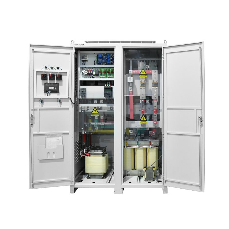 Adopts 6-pulse / 12-pulse SCR rectification with an embedded microcontroller to deliver accurate CC/CV charging modes.