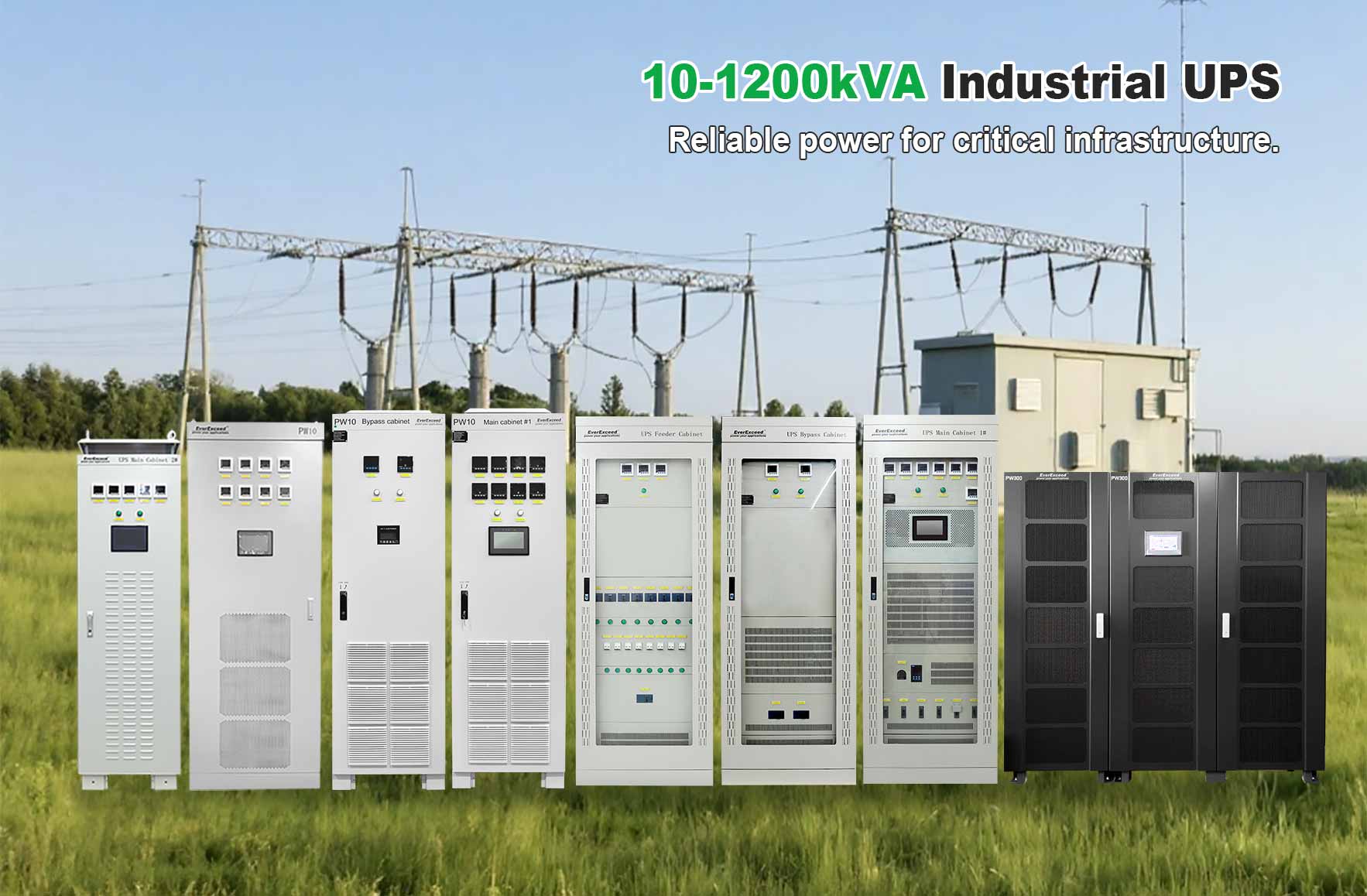 Industrial UPS can be customized according to the customer's environment, including input and output voltage, phase, frequency, battery voltage, charging current  and IP level of the cabinet, etc.